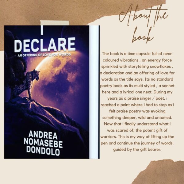 I Declare is Andrea Dondolo’s first published book. A journey through years of gracing stages, evoking the effervescent spirit of the praise singer, the forerunner of royals.