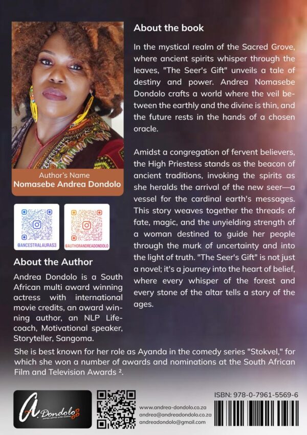 In the mystical realm of the Sacred Grove, where ancient spirits whisper through the leaves, “The Seer’s Gift” unveils a tale of destiny and power. Andrea Nomasebe Dondolo crafts a world where the veil between the earthly and the divine is thin, and the future rests in the hands of a chosen oracle. Amidst a congregation of fervent believers, the High Priestess stands as the beacon of ancient traditions, invoking the spirits as she heralds the arrival of the new seer—a vessel for the cardinal earth’s messages.